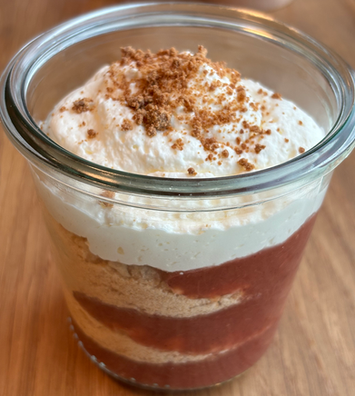 Du har også mulighed for at tilvælge vores lækre dessert to go: Rabarbertrifli. Tag den med dig og nyd den på din 10 minutters gåtur til Moesgaard, så din gastronomiske oplevelse fortsætter, mens du venter på forestillingen.